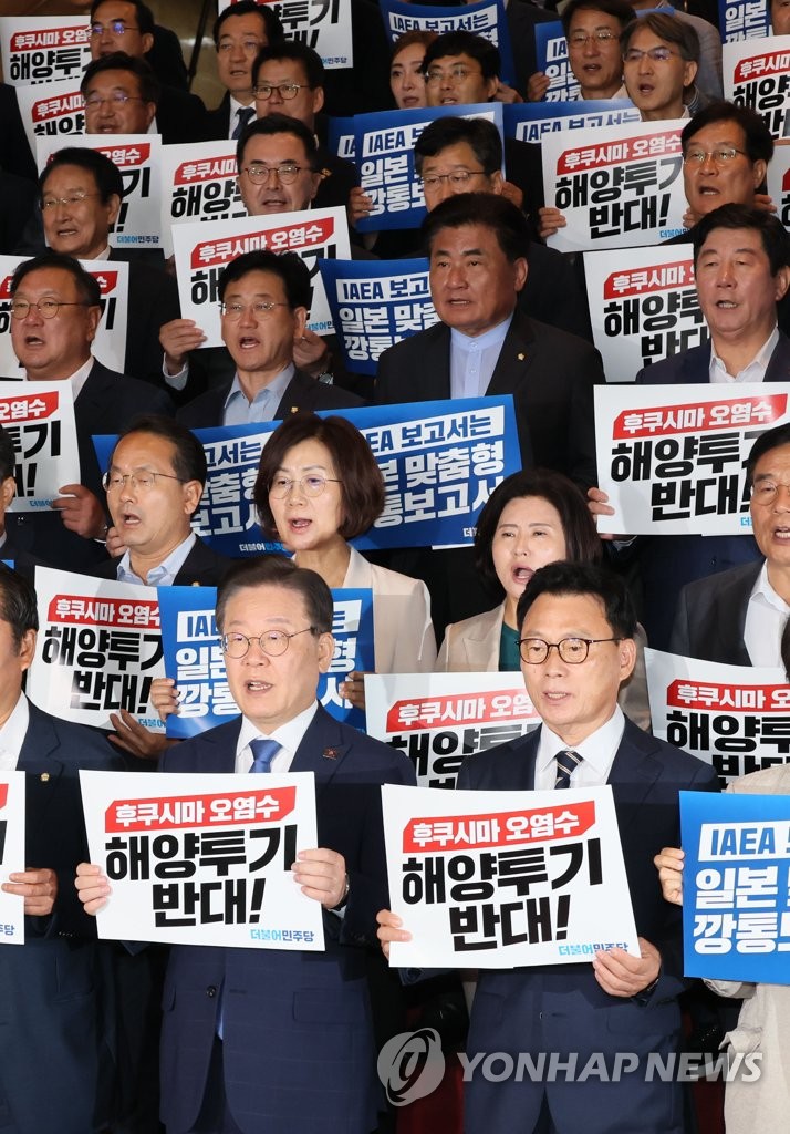 SEOUL, July 6 (Yonhap) -- All lawmakers of the main opposition Democratic Party (DP) were to launch an overnight sit-in at the National Assembly on Thursday as the party made all-out efforts to protest Japan's plan to discharge radioactive water from the crippled Fukushima nuclear plant into the ocean.