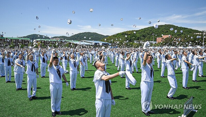 | ▲ 이제 시작이다! (창원=연합뉴스) 17일 경남 창원시 진해구 해군교육사령부 기초군사교육단 연병장에서 열린 해군병 702기 수료식에서 수료자들이 정모를 하늘로 던지고 있다. 2024.5.17 [해군 제공. 재판매 및 DB 금지] image@yna.co.kr |