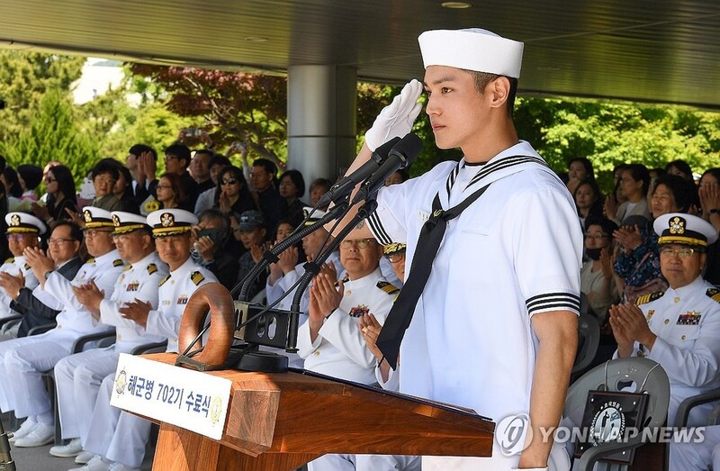 | ▲ NCT 멤버 이병 이태용 힘찬 경례 (창원=연합뉴스) 그룹 NCT 멤버 이태용 이병이 17일 경남 창원시 진해구 해군교육사령부에서 열린 해군병 702기 수료식에서 훈련 소감 및 감사의 편지를 낭독하기 전 경례를 하고 있다. 2024.5.17 [해군 제공. 재판매 및 DB 금지] image@yna.co.kr |