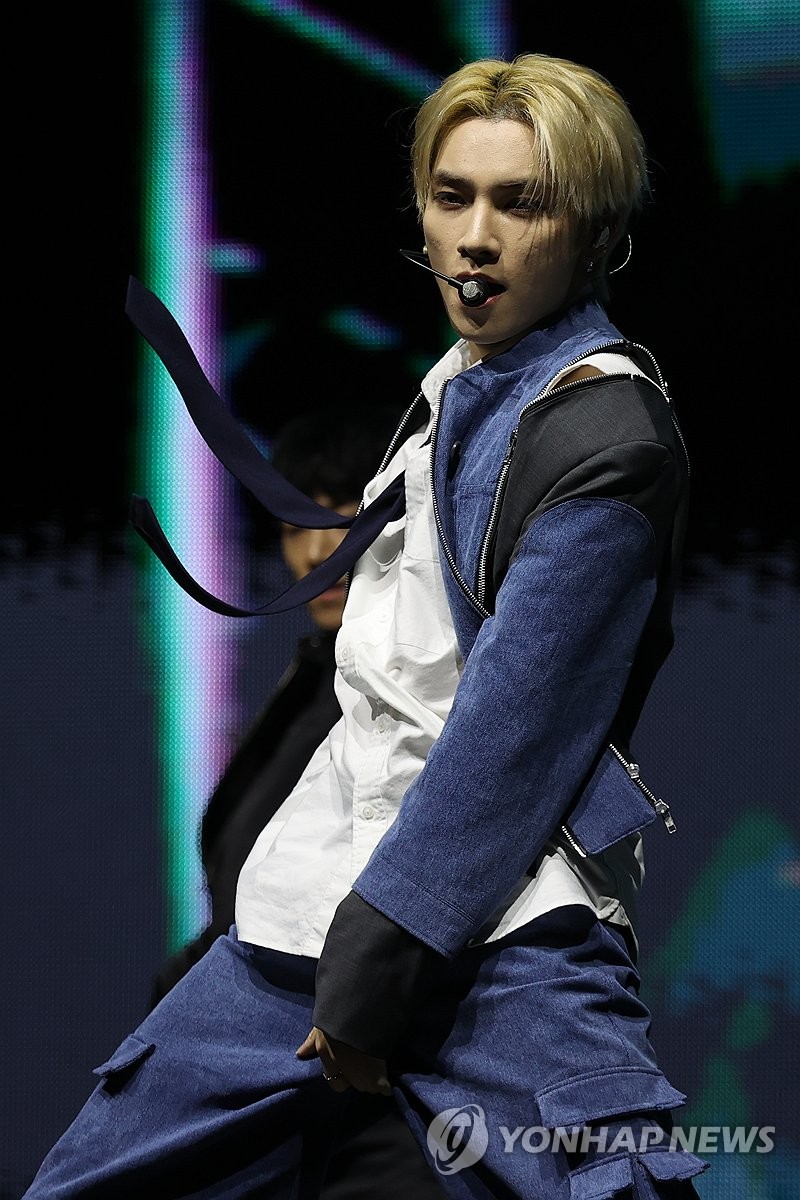 | ▲ 웨이션브이, 샤오쥔의 매력속으로 (서울=연합뉴스) 류효림 기자 = 그룹 웨이션브이(WayV)의 샤오쥔이 3일 오후 서울 용산구 블루스퀘어에서 열린 다섯번째 미니앨범 'Give Me That' 발매 기념 미디어 쇼케이스에서 타이틀곡 무대를 선보이고 있다. 2024.6.3 ryousanta@yna.co.kr |
