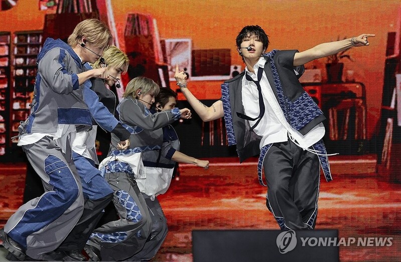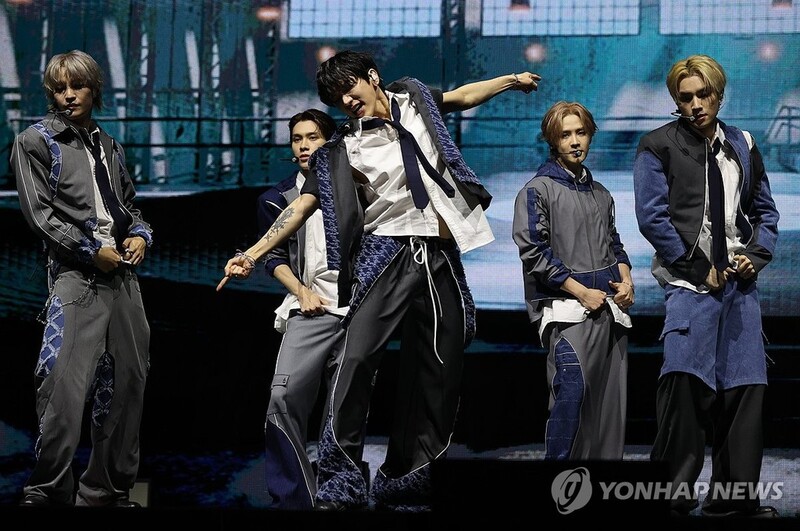 | ▲ 웨이션브이, 국내 첫 쇼케이스 무대 (서울=연합뉴스) 류효림 기자 = 그룹 웨이션브이(WayV)가 3일 오후 서울 용산구 블루스퀘어에서 열린 다섯번째 미니앨범 'Give Me That' 발매 기념 미디어 쇼케이스에서 타이틀곡 무대를 선보이고 있다. 2024.6.3 ryousanta@yna.co.kr |