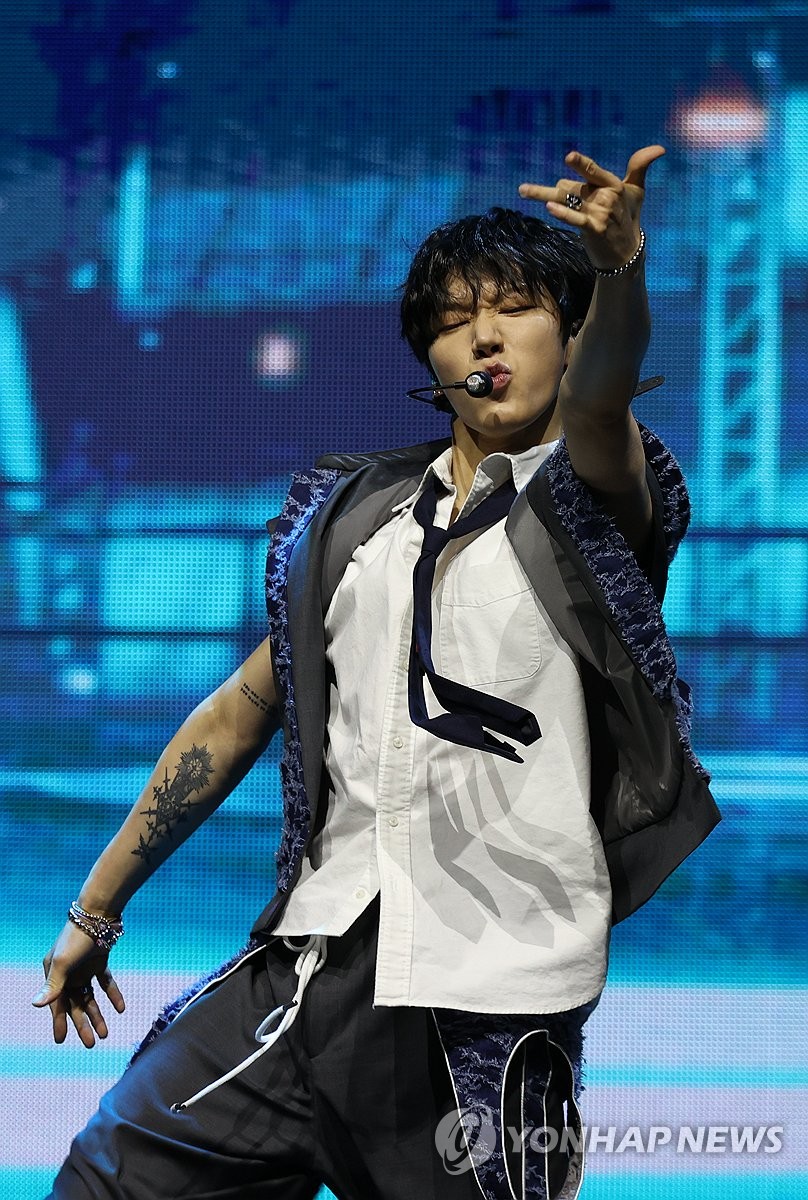 | ▲ 화사하다 쿤 (서울=연합뉴스) 류효림 기자 = 그룹 웨이션브이(WayV)의 쿤이 3일 오후 서울 용산구 블루스퀘어에서 열린 다섯번째 미니앨범 'Give Me That' 발매 기념 미디어 쇼케이스에서 타이틀곡 무대를 선보이고 있다. 2024.6.3 ryousanta@yna.co.kr |