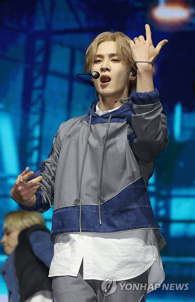 | ▲ 텐션 높은 텐 (서울=연합뉴스) 류효림 기자 = 그룹 웨이션브이(WayV)의 텐이 3일 오후 서울 용산구 블루스퀘어에서 열린 다섯번째 미니앨범 'Give Me That' 발매 기념 미디어 쇼케이스에서 타이틀곡 무대를 선보이고 있다. 2024.6.3 ryousanta@yna.co.kr |