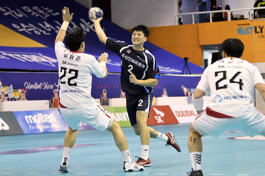 두산은 6일 충북 청주의 올림픽국민생활관에서 열린 2020-2021 SK핸드볼 코리아리그 남자부 1라운드 SK와 경기에서 25-20으로 승리했다.