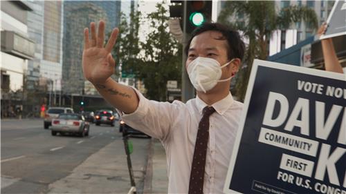 다섯 후보 중 가장 많은 분량을 차지하는 건 데이비드 김이다. LA 한인타운이 속한 지역구에 출마했던 그는 이민 변호사이자 성 소수자로, 가장 진보적 성향을 보였다. 당시 한인사회의 전폭적 지지를 받지는 못했음에도 5% 포인트 차로 낙선하며 선방했다는 평가를 받았다.