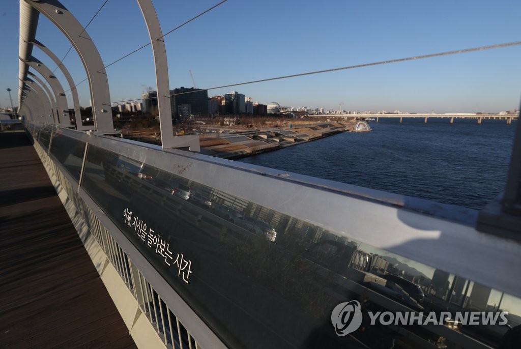 | ▲ 서울 마포대교에 자살을 예방하기 위해 설치된 펜스와 문구. 2018.1.23 [연합뉴스 자료사진] |