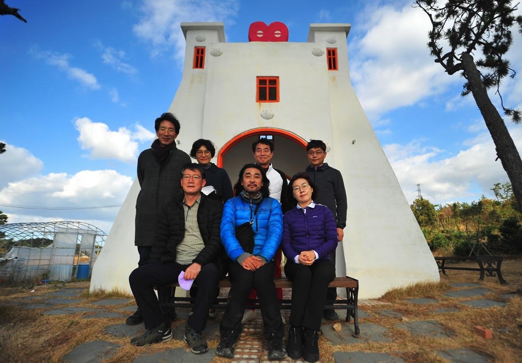 (신안=연합뉴스) 조근영 기자 = 전남 신안군은 순례자의 섬 기점·소악도에 12사도 건축미술 작품을 설치한 국내 작가들을 초청, 팸투어를 했다고 16일 밝혔다.