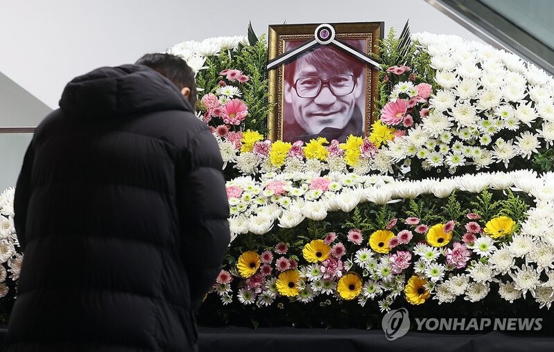 | ▲ '국민 배우' 고 안성기 추모 공간, 서울영화센터에 마련 (서울=연합뉴스) 박동주 기자 = 5일 서울 중구 충무로 서울영화센터에 마련된 '국민 배우' 고 안성기를 추모하는 공간에서 조문객이 헌화, 묵념하고 있다. 2026.1.5 pdj6635@yna.co.kr |