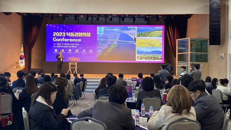 낙동강협의체는 24일 오후 경남 양산시청 비즈니스센터 컨벤션홀에서 '2023 낙동강협의체 콘퍼런스'를 열고 낙동강 관광자원 활성화를 위한 강연, 주제발표, 토론회를 했다.