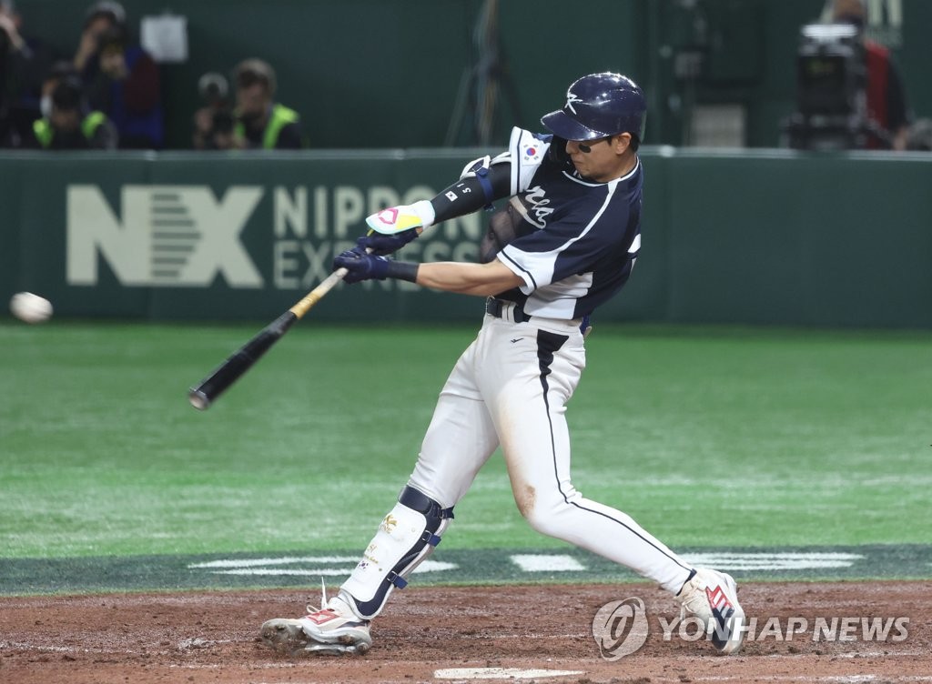 | ▲ 이정후, 2타점 2루타 (도쿄=연합뉴스) 이지은 기자 = 13일 오후 일본 도쿄돔에서 열린 2023 월드베이스볼클래식(WBC) B조 본선 1라운드 한국과 중국의 경기. 3회초 무사 만루 상황에서 한국 이정후가 2타점 2루타를 치고 있다. 2023.3.13 jieunlee@yna.co.kr |