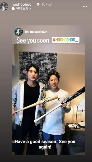당시 요시다는 소셜네트워크서비스(SNS)에 "조만간 봅시다"라는 글과 함께 이정후와 찍은 사진을 올렸다. 곧바로 이정후는 "좋은 시즌 보내세요. 또 만나요"라고 영어로 적은 글로 화답했다.