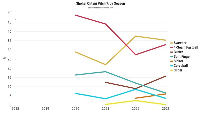 그런데도 오타니가 한 시즌 만에 몸값을 훌쩍 부풀릴 수 있던 것은 2023시즌에도 멈추지 않았던 성장 덕분이다.