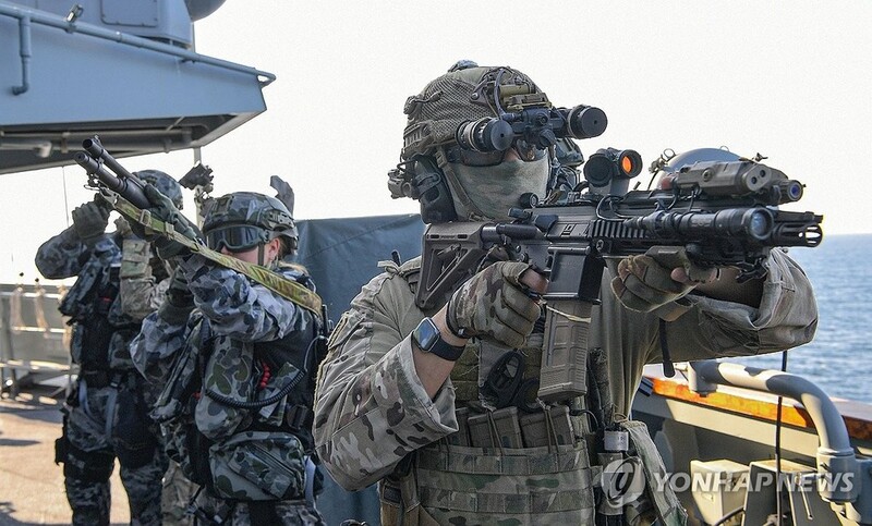 | ▲ South Korean and Australian troops take part in a combined maritime interdiction exercise aboard a vessel in waters off the eastern port city of Ulsan, 299 kilometers southeast of Seoul, on Nov. 2, 2023, in this photo provided by South Korea's Navy. (PHOTO NOT FOR SALE) (Yonhap) |