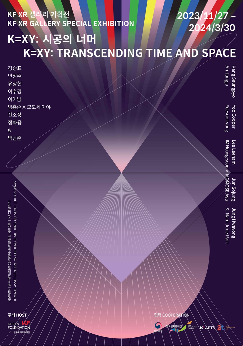 'K=XY: 시공의 너머'를 주제로 오는 27일부터 2024년 3월 30일까지 열리는 기획전에는 강승표, 백남준, 안정주, 유상현, 이수경, 이이남, 임흥순×모모세 아야, 전소정, 정화용 등 한국을 대표하는 작가들의 VR, 설치, 미디어아트 작품들을 소개한다.