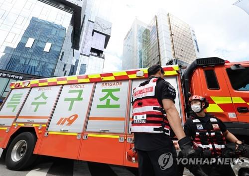 | ▲ Rescue officials conduct a search operation on Aug. 10, 2022, to find two people who disappeared into a manhole in southern Seoul. (Yonhap) |
