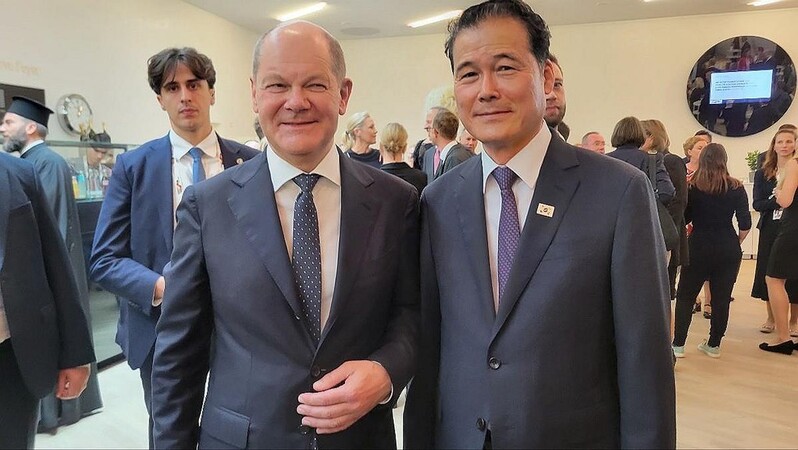 During the ceremony held in Hamburg on Tuesday, Kim met with German Chancellor Olaf Sholz, German parliament President Barbel Bas and other key officials, and called for support for Seoul's vision for a free and peaceful Korean Peninsula, the ministry said.