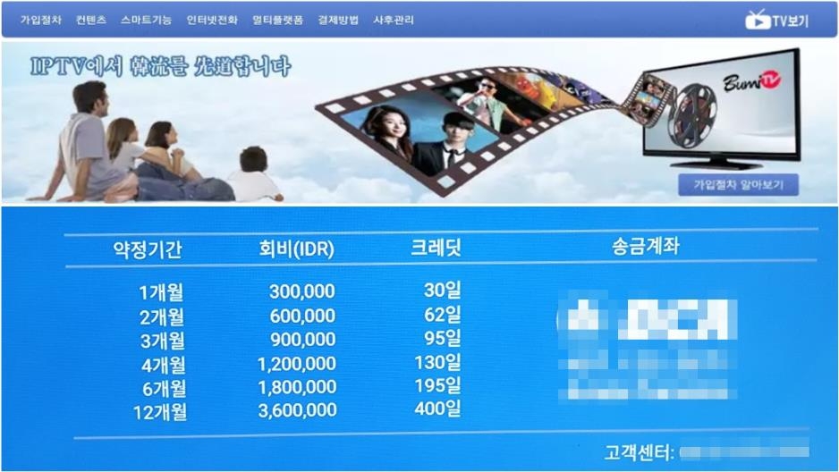A씨는 인도네시아에서 '티비○'라는 상호로 IPTV 업체를 운영하면서 원격 조종을 통해 국내·외 72개 채널의 실시간 방송과 주문형 비디오(VOD) 형식의 영화·드라마·예능 프로그램 등 10만8천편을 셋톱박스와 온라인에서 시청할 수 있도록 교민들에게 제공했다.
