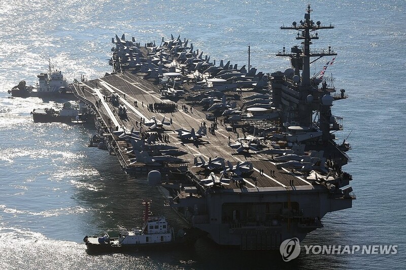 Chief of Naval Operations Adm. Yang Yong-mo and his U.S. counterpart, Adm. Lisa Franchetti, held the talks aboard the USS Carl Vinson aircraft carrier currently docked at a naval base in Busan, 320 kilometers southeast of Seoul.
