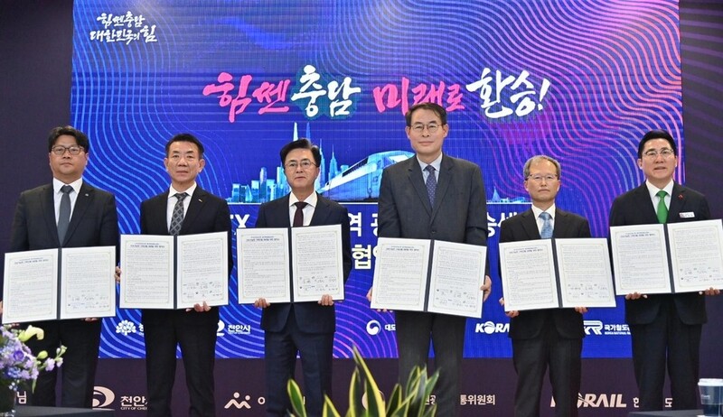 충남도는 13일 천안아산상생협력센터 대도시권광역교통위원회·한국철도공사·국가철도공단·천안시·아산시와 'KTX 천안아산역 광역복합환승센터 지속가능한 구축 모델 마련을 위한 업무협약'을 체결했다.