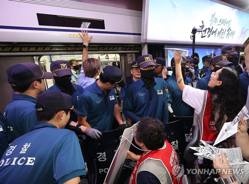 The subway operator said it has requested the police's cooperation in blocking off the group's protests within all subway stations and trains, citing the Assembly and Demonstrations Act.