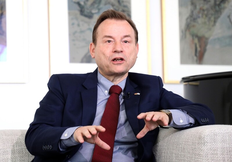 | ▲ German Ambassador to South Korea Georg Schmidt speaks during an interview with Yonhap News Agency at the ambassador's official residence in Seoul, on Nov. 21, 2023. (Yonhap) |