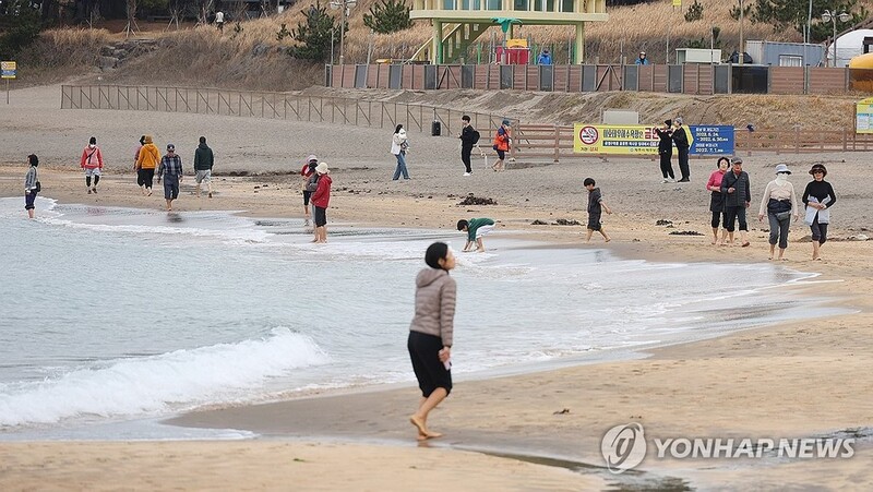봄 같은 날씨에 해수욕장을 찾은 시민들은 바닷물에 발을 담그는가 하면, 두꺼운 외투 대신 가벼운 옷차림으로 공원을 거닐며 한가로운 시간을 보냈다.