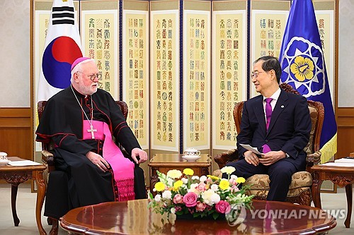 Archbishop Gallagher met with Prime Minister Han Duck-soo on Wednesday afternoon to share opinions about enhancing peace and stability on the Korean Peninsula and enhancing relations between the two even further, the minister's office said.