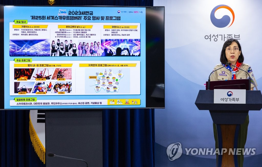 (서울=연합뉴스) 김윤구 기자 = 2023 새만금 제25회 세계스카우트 잼버리 개막이 일주일 앞으로 다가온 가운데 정부와 잼버리조직위원회가 전 세계 스카우트 대원 4만3천명을 맞이할 준비를 끝냈다고 여성가족부가 25일 밝혔다.