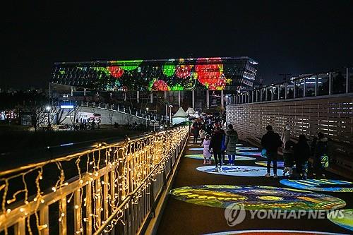 | ▲ '2023 세종 빛 축제' 미디어파사드 공연 (세종=연합뉴스) '2023 세종 빛 축제'가 막을 올린 지난 2일 밤 금강 이응다리를 찾은 시민과 관광객들이 세종시청을 배경으로 펼쳐진 미디어파사드 공연을 관람하고 있다. 이 축제는 오는 31일까지 이어진다. 2023.12.3 [세종시 제공. 재판매 및 DB 금지] |