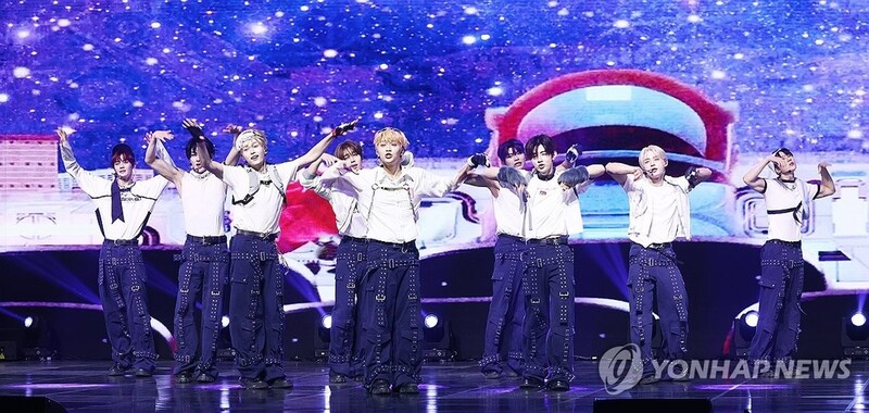 | ▲ 제로베이스원의 군무 (서울=연합뉴스) 진연수 기자 = 그룹 제로베이스원이 26일 오후 서울 용산구 블루스퀘어에서 열린 네 번째 미니앨범 '시네마 천국(CINEMA PARADISE)' 발매 쇼케이스에서 타이틀 곡 무대를 선보이고 있다. 2024.8.26 jin90@yna.co.kr |