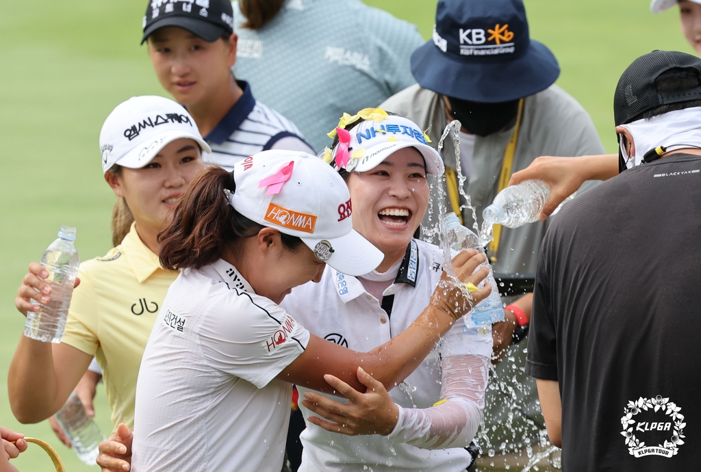 | ▲ 동료 선수들의 우승 축하를 받는 박민지. [KLPGA 제공. 재판매 및 DB 금지] |