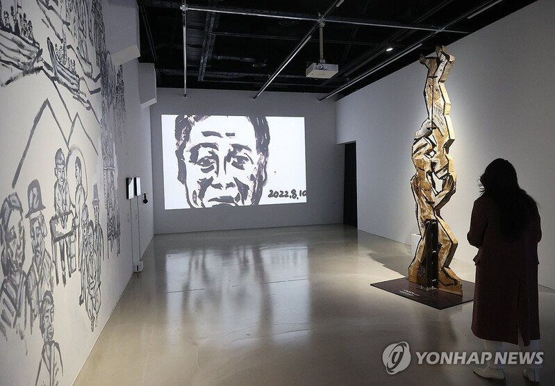 | ▲ 아르코미술관 50주년 기념 '어디로 주름이 지나가는가' 전시 (서울=연합뉴스) 류효림 기자 = 7일 오후 서울 종로구 동숭동 아르코미술관에서 열린 아르코미술관 50주년 기념전시 '어디로 주름이 지나가는가' 개최 기념 기자간담회에서 참석자들이 전시작품을 살펴보고 있다. 2023.12.7 ryousanta@yna.co.kr |