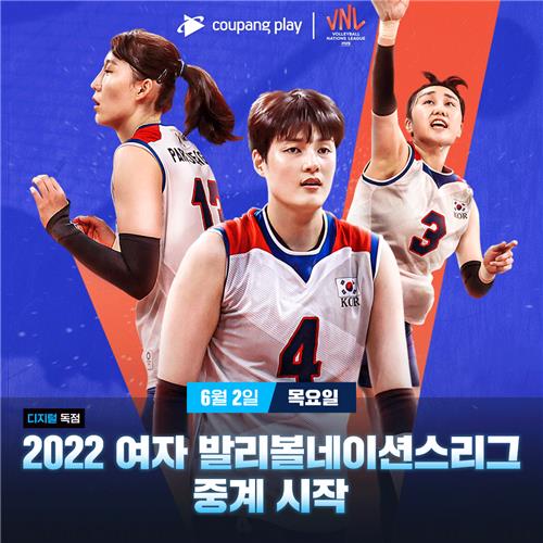 ▲ 쿠팡플레이, 한국 여자배구대표팀 출전 VNL 생중계 = 쿠팡플레이가 한국 여자배구 대표팀이 출전하는 2022 국제배구연맹(FIVB) 발리볼네이션스리그(VNL) 한국 경기를 모두 생중계한다.