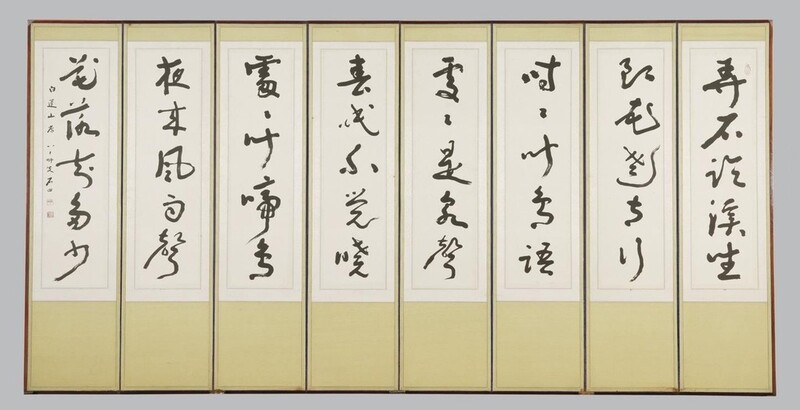 | ▲ '초서오언시병풍'(草書五言詩屛風) 1977년 당나라 시인 백거이의 '유애사'(遺愛寺)와 맹호연의 '춘효'(春曉)를 초서로 쓴 병풍 [국립전주박물관 제공. 재판매 및 DB 금지] |