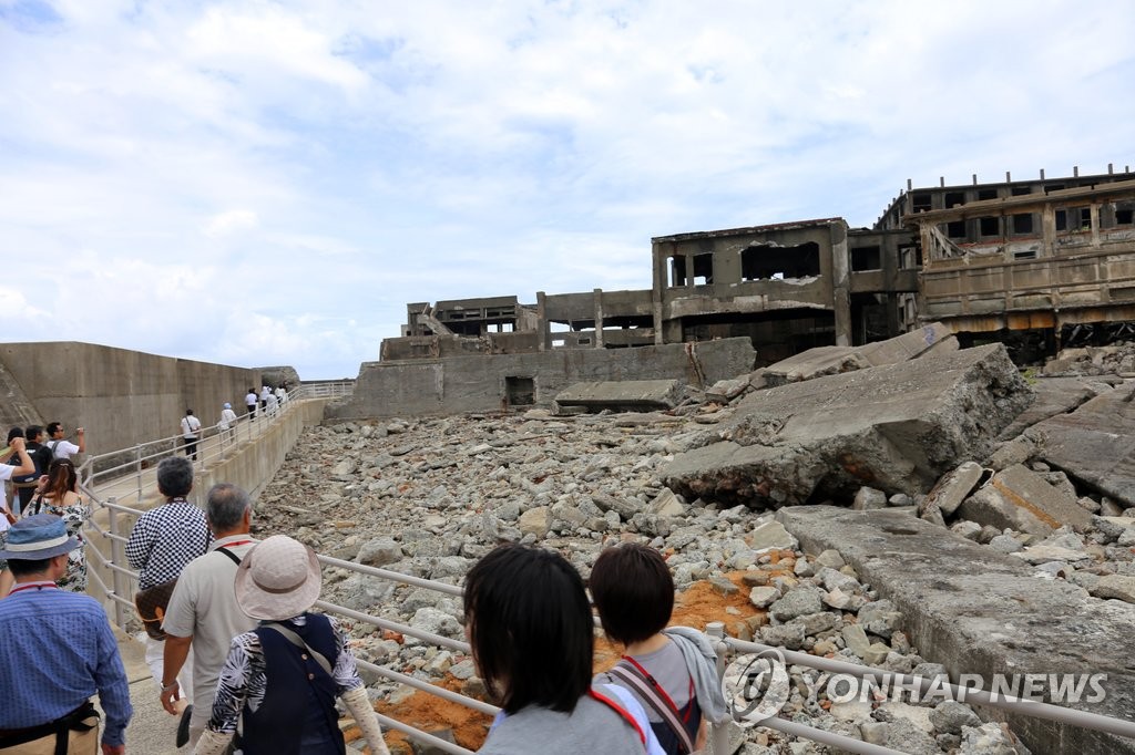 | ▲ 군함도 견학하는 방문자들 (하시마[일본 나가사키]) 이세원 특파원 = 일제 강점기 조선인 강제 노역 현장인 일본 나가사키(長崎)현 하시마(端島, 일명 '군함도')에서 2016년 7월 1일 방문자들이 견학 통로를 따라 이동하고 있다. |