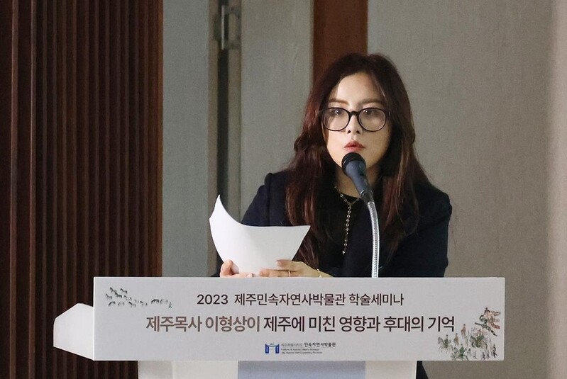 ▲ 발표하는 이현정 제주대 강사 (제주=연합뉴스) 변지철 기자 = 지난 11월 23일 제주민속자연사박물관에서 열린 '제주목사 이형상이 제주에 미친 영향과 후대의 기억' 학술 세미나에서 이현정 제주대 강사가 발표하고 있다. 2023.12.10