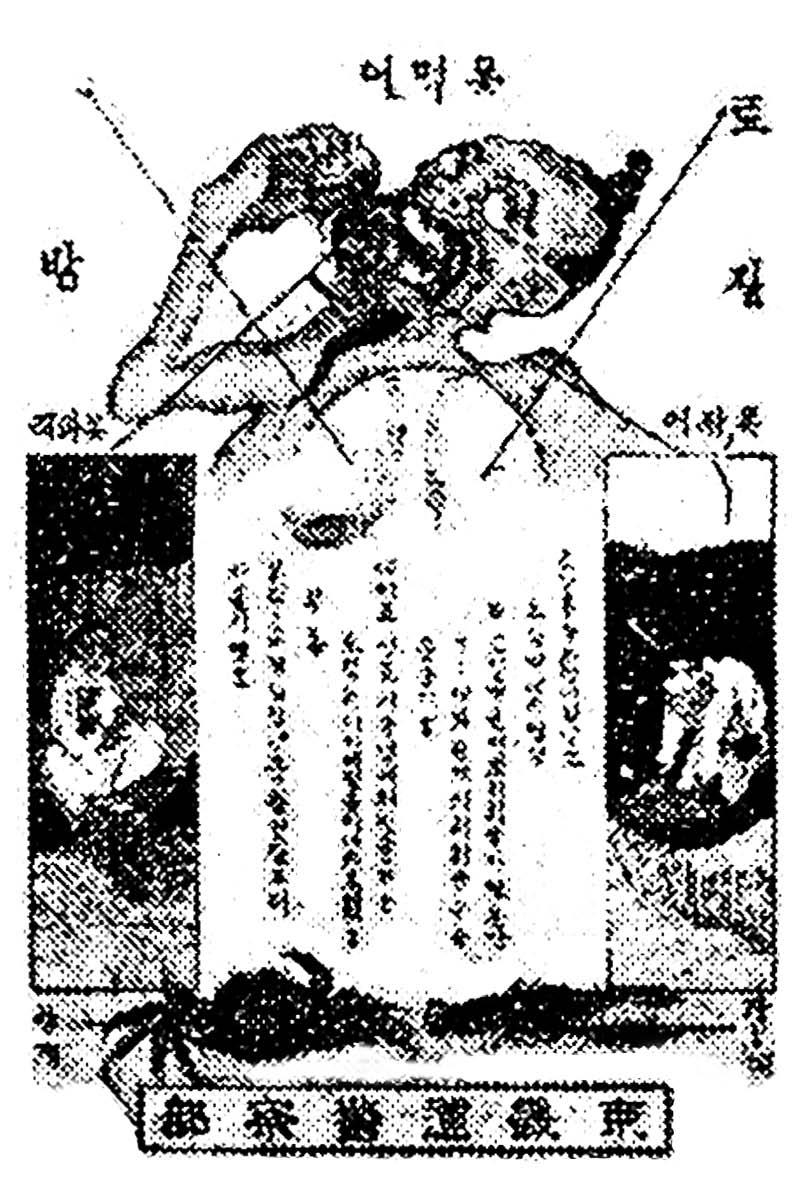 총독부는 조선인들이 가재와 동남참게를 날로 먹어 생긴다는 결론을 내리고 이러한 포스터를 만들었다.