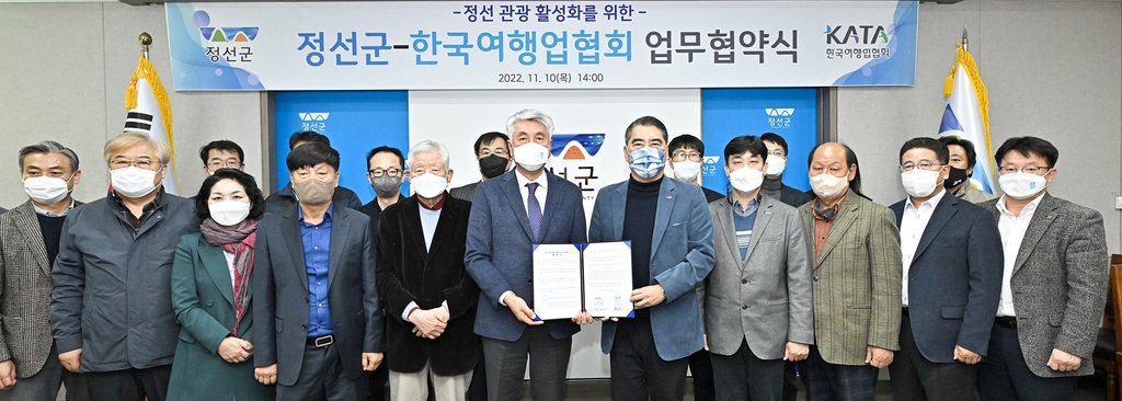 (정선=연합뉴스) 배연호 기자 = 한국여행업협회와 강원 정선군이 10일 국민고향 정선의 관광 활성화를 위한 공동마케팅 업무협약을 했다.
