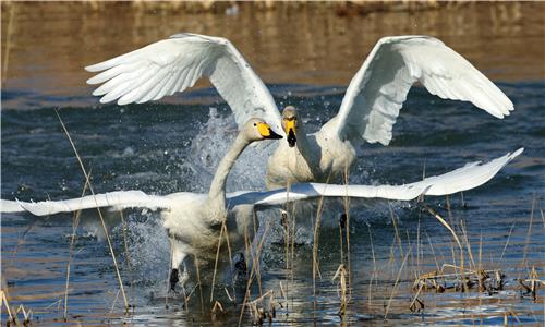 처음 5∼7마리가 있던 고니가 한때 50여 마리까지 늘어나자 가족 단위로 생활하는 고니들이 먹이 공간을 사수하거나 빼앗기 위해 싸움에 나서는 것이다.