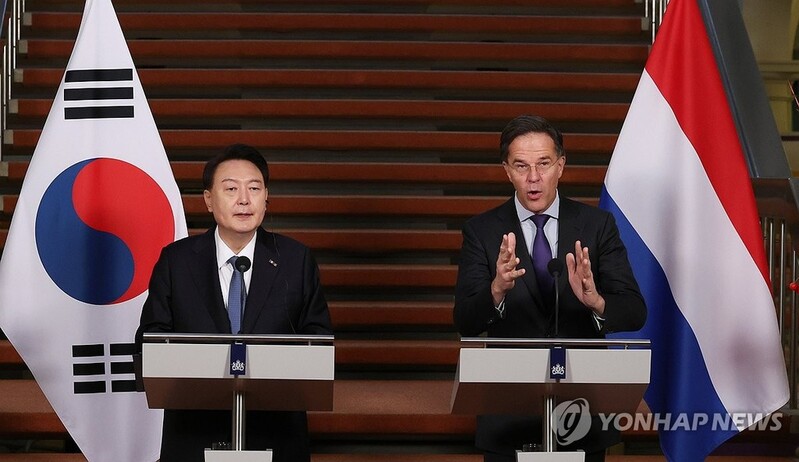 President Yoon Suk Yeol and Dutch Prime Minister Mark Rutte adopted a joint statement that codified a "semiconductor alliance" during their summit held in The Hague during Yoon's state visit to the Netherlands, Yoon's office said.