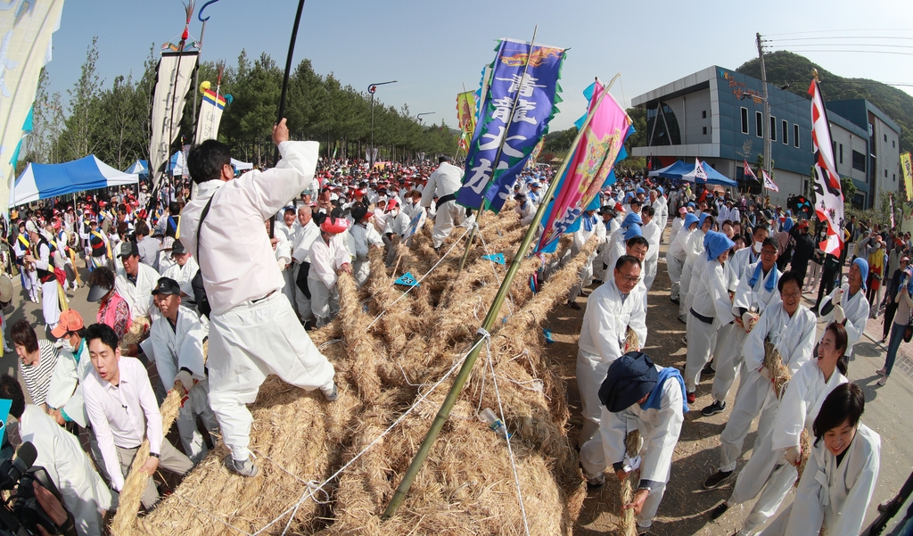 (의령=연합뉴스) 김동민 기자 = 21일 경남 의령군 의령문화원 앞에서 '의령큰줄땡기기' 대회가 열리고 있다.