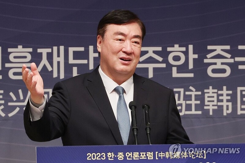 | ▲ Chinese Ambassador to South Korea Xing Haiming speaks during a forum co-hosted by the Chinese Embassy in Seoul and the Korea Press Foundation on Dec. 11, 2023. (Yonhap) |