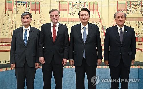 President Yoon Suk Yeol later hosted a dinner at his official residence for the three national security advisers, the presidential officer said.