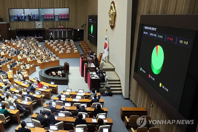▲ The vote results for the new Supreme Court chief justice are displayed on a screen inside the parliamentary chamber at the National Assembly in Seoul, on Dec. 8, 2023. (Yonhap)