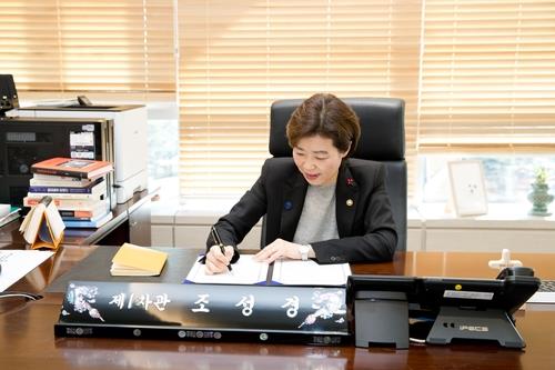 ▲ Cho Seong-kyung, first vice minister of South Korea's science ministry, signs a framework agreement to boost research cooperation with the United States and Japan, in this undated photo provided by the ministry. (PHOTO NOT FOR SALE) (Yonhap)