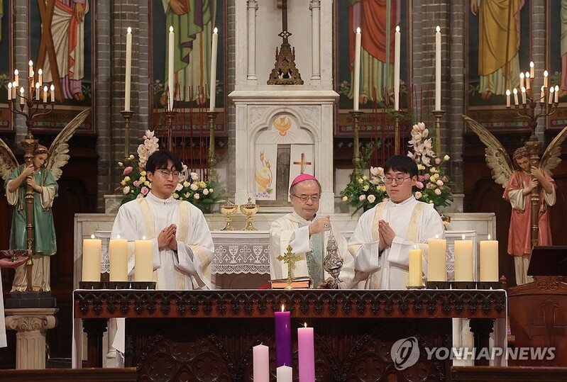 ▲ This photo, taken Dec. 11, 2023, shows a Mass to celebrate the 60th anniversary of South Korea-Vatican diplomatic relations at Myeongdong Cathedral in Seoul. (Yonhap)