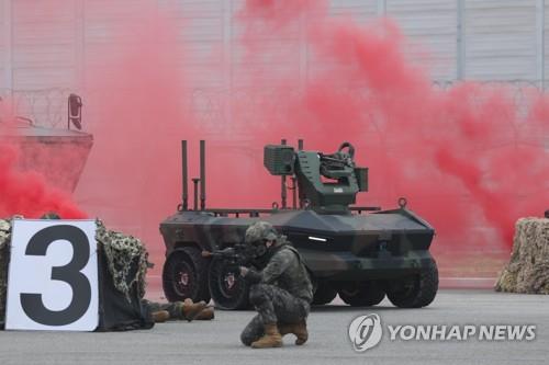 ▲ A multi-purpose unmanned fighting vehicle maneuvers during a press event held by the Army's TIGER Demonstration Brigade, a trial unit armed with cutting-edge weapons systems, at an aviation unit of the Army in Yangju, north of Seoul, in this file photo taken June 2, 2023. (Yonhap)