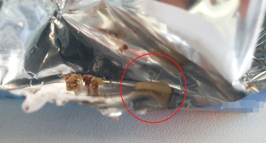 | ▲ 에너지바 비닐포장서 나온 애벌레 [독자 제공. 재판매 및 DB 금지] |