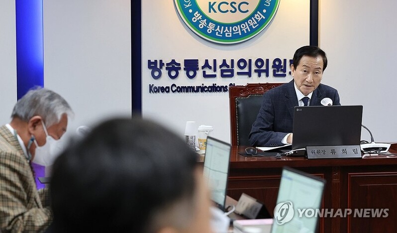 | ▲ 전체회의 주재하는 류희림 방심위원장 (서울=연합뉴스) 김주형 기자 = 류희림 방송통신심의위원장(오른쪽)이 8일 오후 서울시 목동 한국방송회관에서 열린 2024년 제1차 전체 회의를 주재하고 있다. 2024.1.8 kjhpress@yna.co.kr |