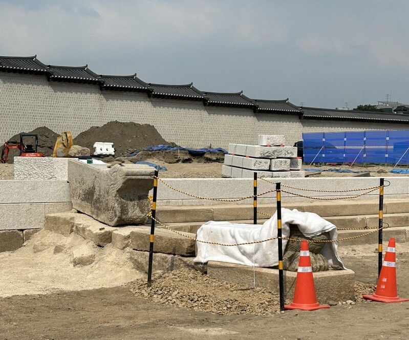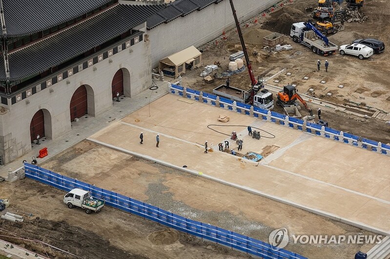 | ▲ 광화문 앞 월대 복원 공사 현장 (서울=연합뉴스) 김예나 기자 = 서울 경복궁 광화문 앞에서 공사 작업이 한창 진행 중인 모습. 사진은 9월 중순 촬영한 것. 2023.10.1 yes@yna.co.kr |
